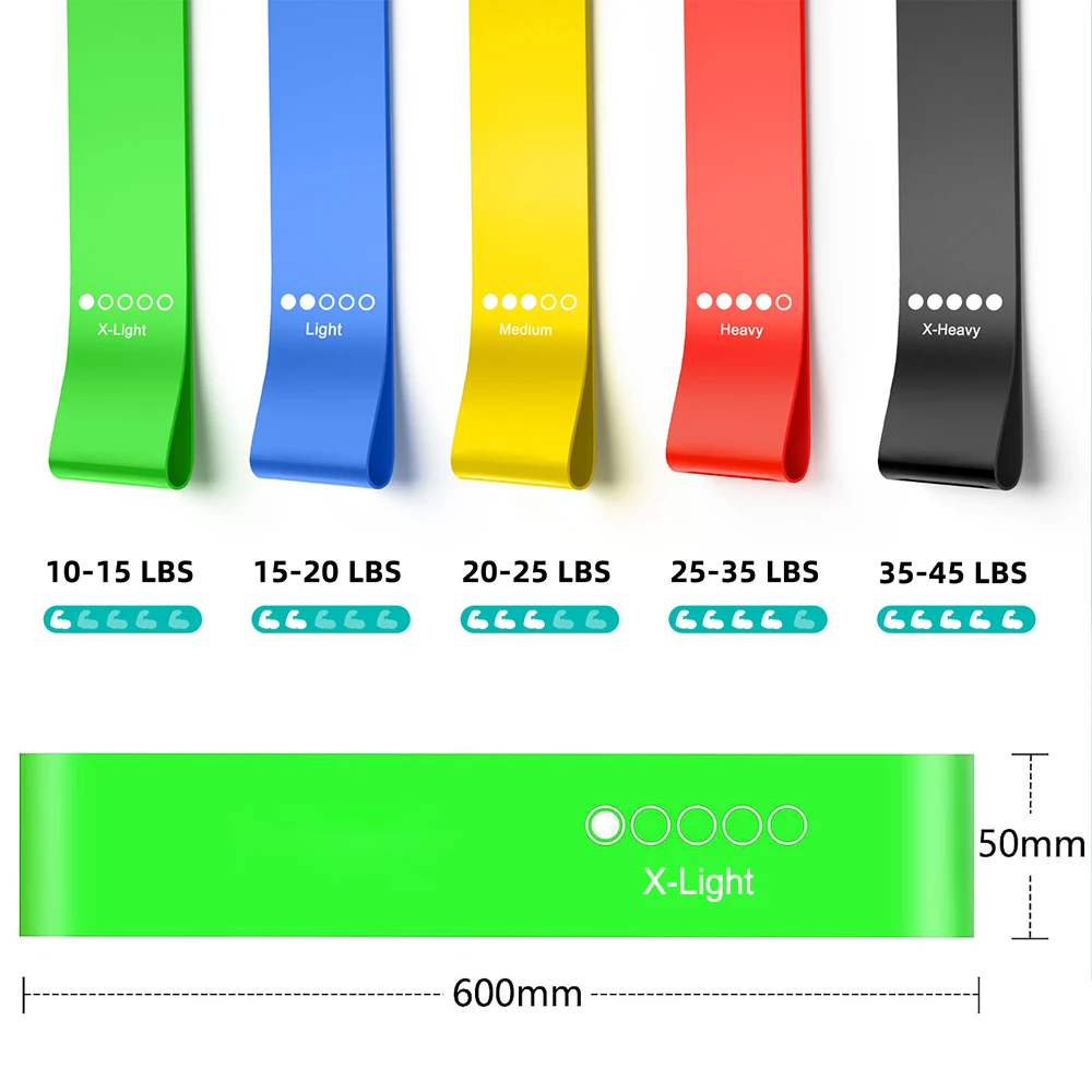Fitness Resistance Bands Set Custom logo 5 Latex Rubber Elastic Mini Loop Yoga Gym Workout Hip Bands Exercise